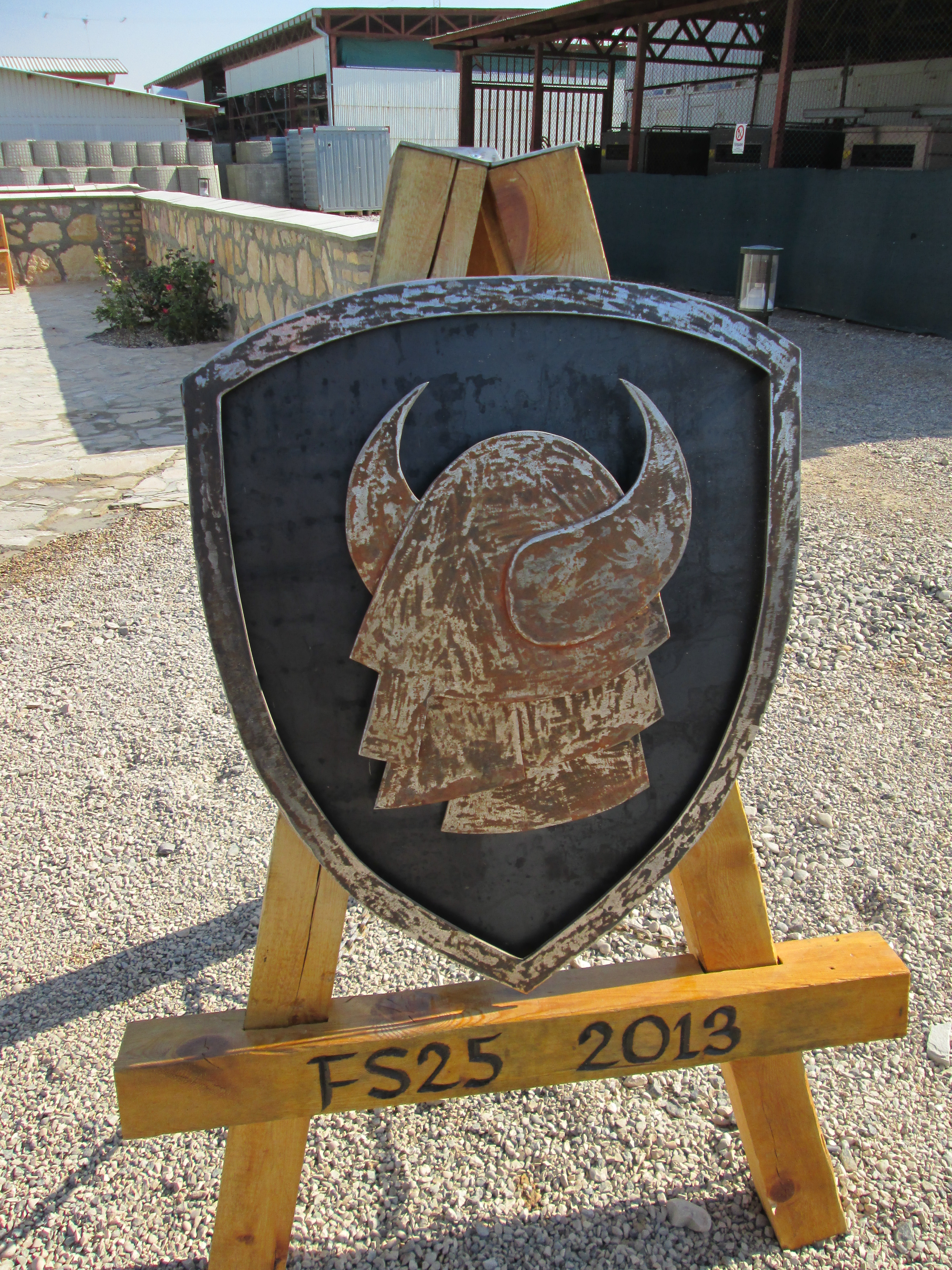 Å ena sidan kan vi konstatera att de 25 kontingenter med svenska kvinnor och män som tjänstgjort i vårt truppbidrag i Afghanistan har gjort stora, goda och förhoppnigsvis bestående insatser. Vi har all anledning att vara stolta över vad vi bidragit med. Det är också därför lite sorgesamt att den nu pågående kontingenten FS26 med ann sannolkihet blir de sista och att CNL, som varit som vilket svenskt regemente som helst, nu avvecklas. Bilden ovan visar FS 25:s sköld.