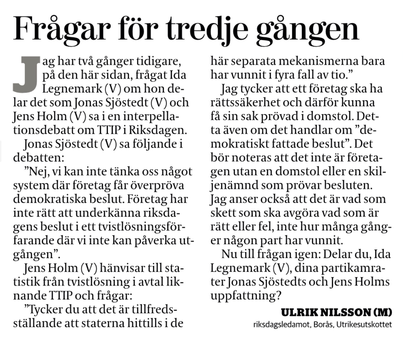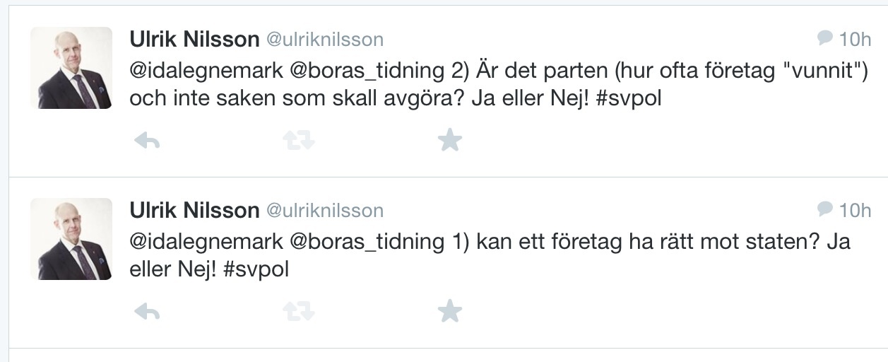 Jag svarade Ida på Twitter med att konkretisera frågorna, nu får vi se vad hennes svar blir. Kommer hon att instämma i partiledarens uttalande och reta näringslivet, eller kommer hon (ledamot i (V):s partistyrelse) att ta avstånd från ledaren?