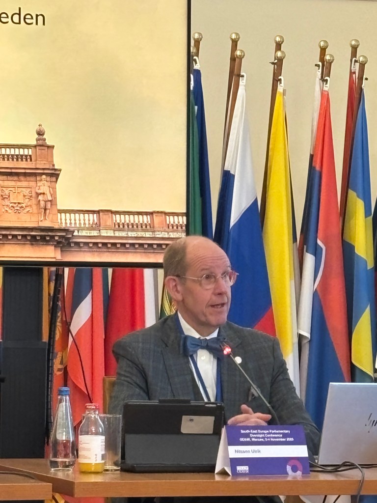 Efter mitt inlägg sa direktören för ODIHRs (OSSEs kontor för Demokratiska Institutioner och Mänskliga Rättigheter) Mr Konstantine Vardzelashvili (tidigare georgisk minister) att man blir lite nedstämd när man inser hur lång vägen till en fungerande kontroll och ett civiliserat debattklimat är. Det är enkelt att hålla med honom samtidigt som det dels är rörelsen som är viktig – att man tar steg åt rätt håll – dels att det uppmanar oss att vårda vår demokrati och undvika politiskt spel i kontrollverksamheten.